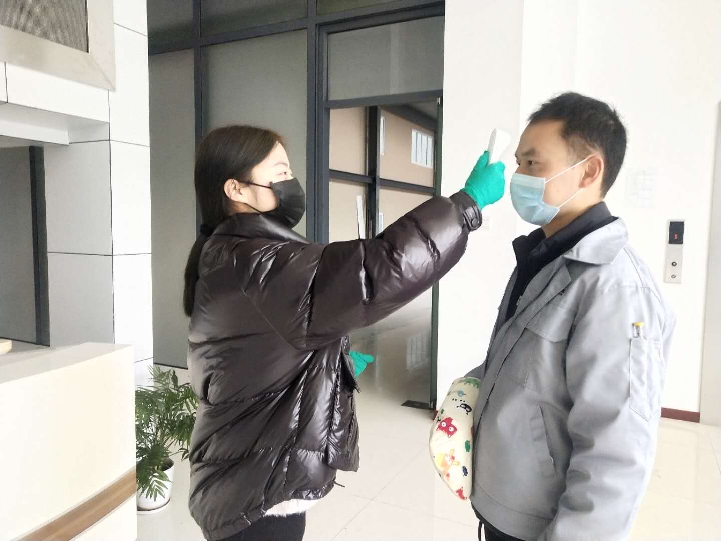 2020年2月15日,是南通飛宇電器設(shè)備有限公司復(fù)工的第二天。一大早,在辦公樓門口的消毒處,一個(gè)熟悉的身影已經(jīng)完成了手部除菌,排隊(duì)準(zhǔn)備接受額頭測溫。